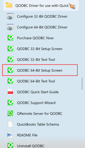From your start menu, Navigate to the QODBC Driver for use with QuickBooks